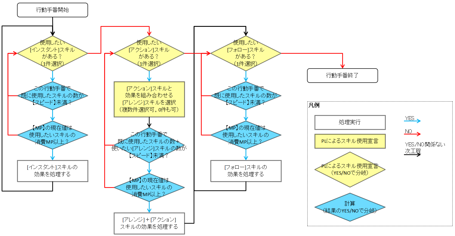 - 1回の行動手番の中で、同一のスキルをに複数回使う事は原則的にできない